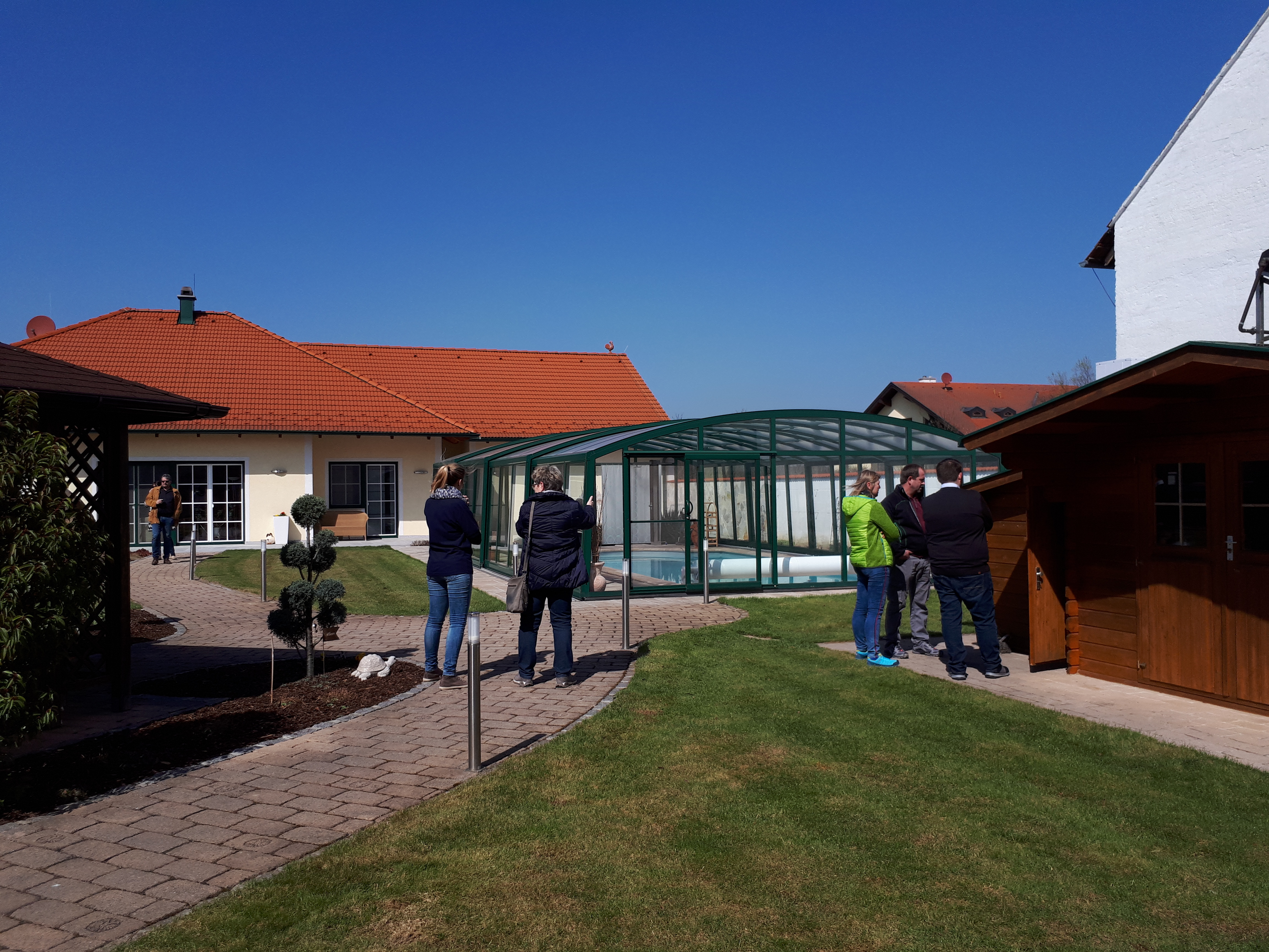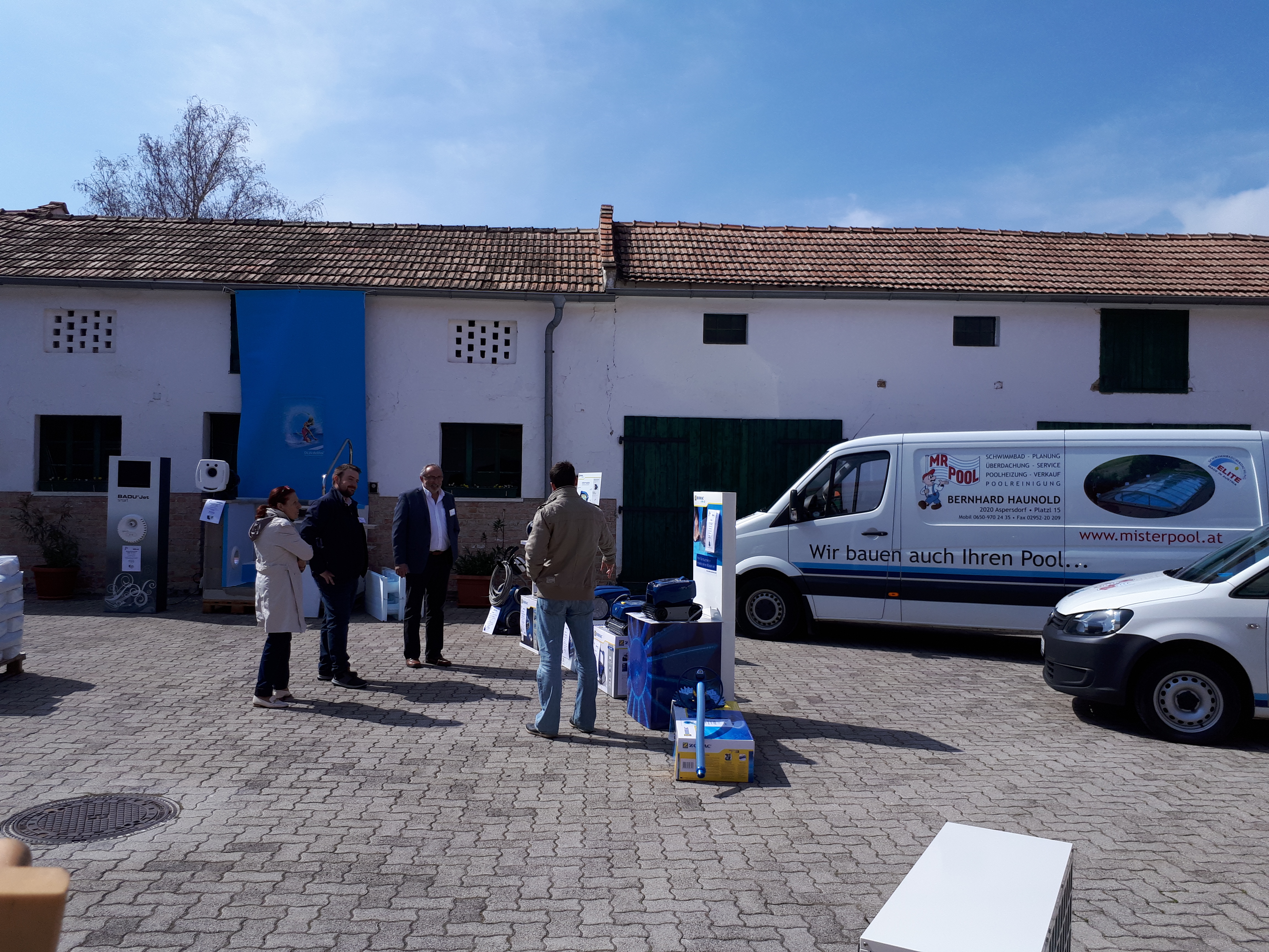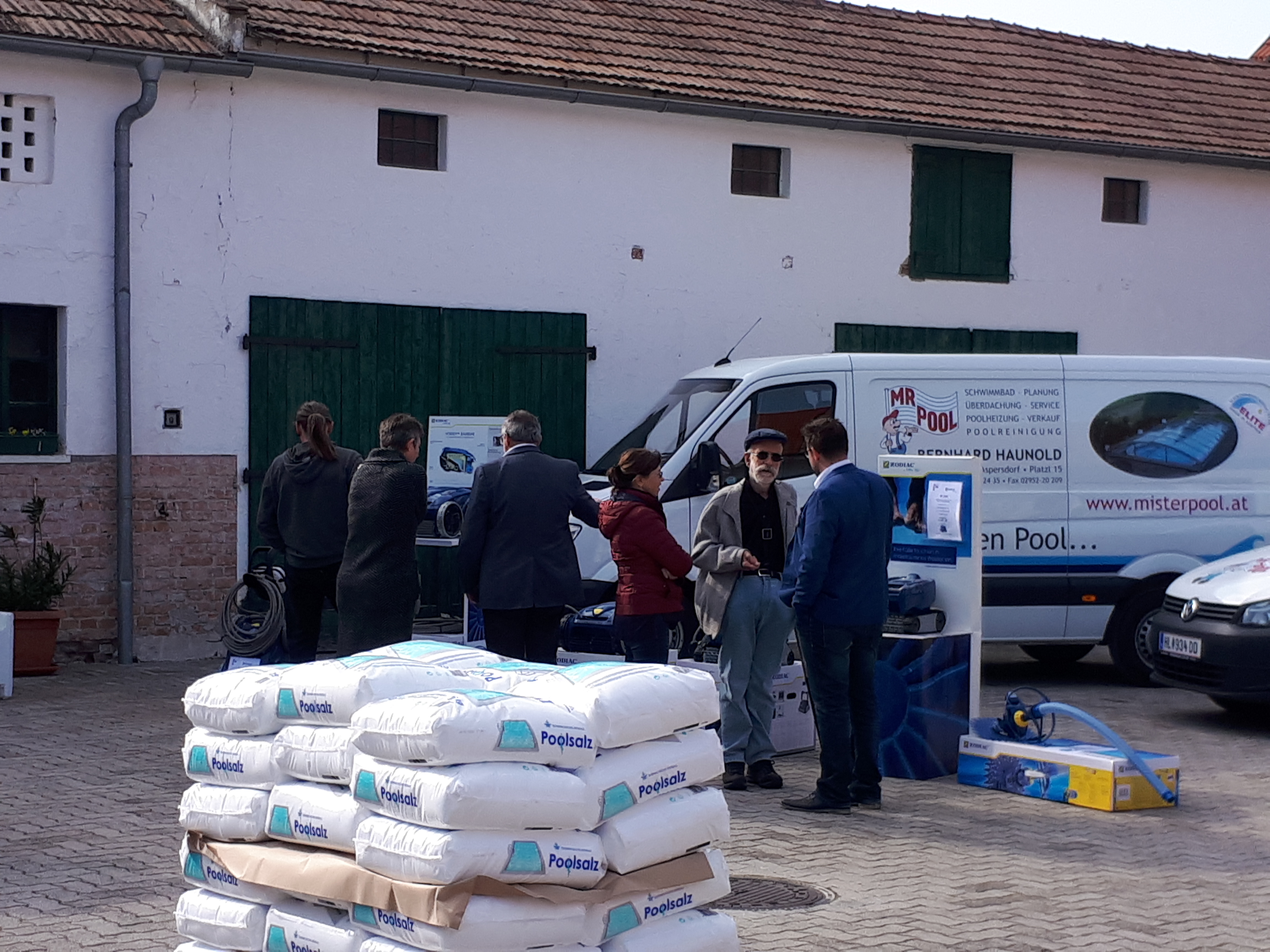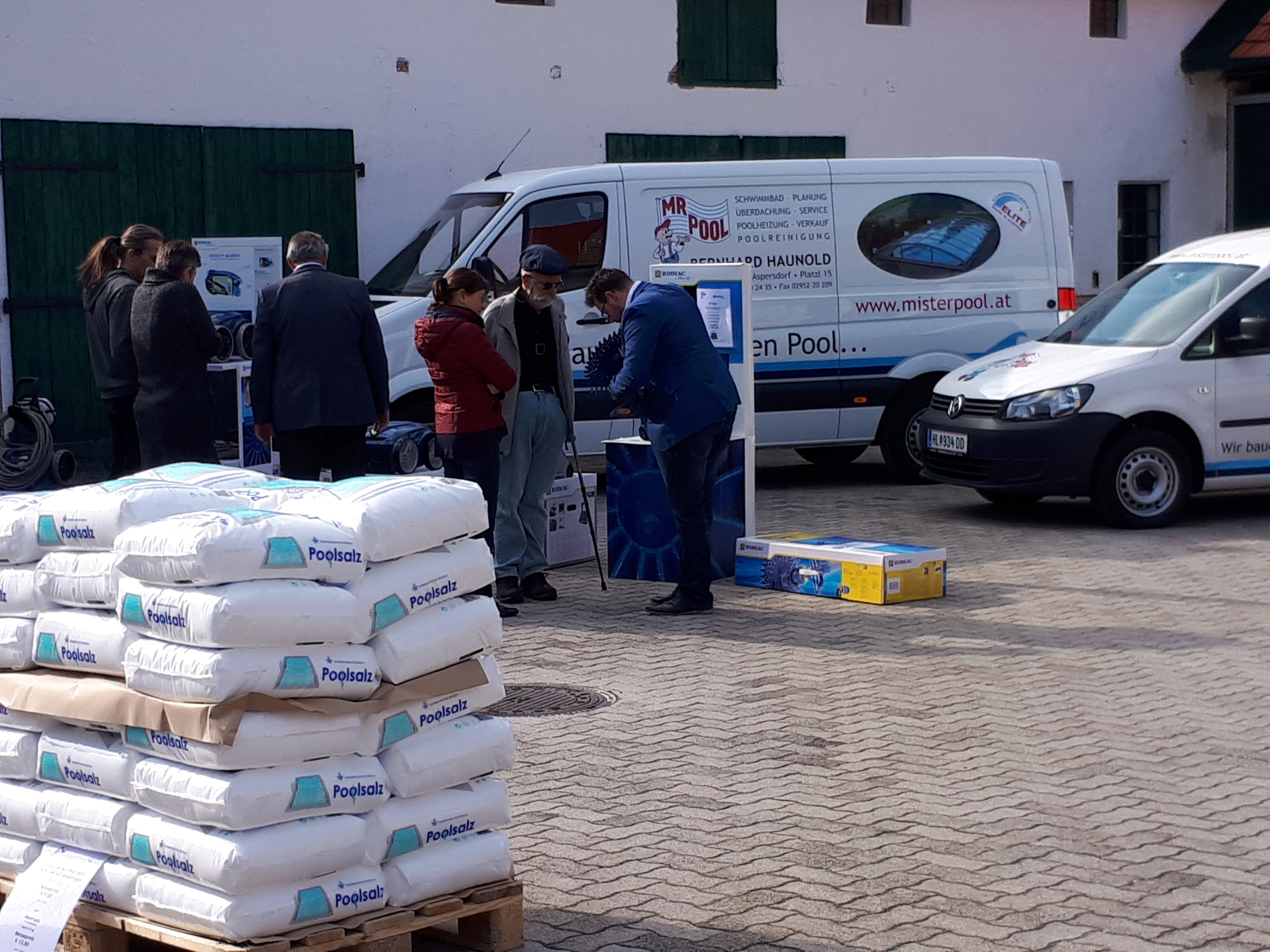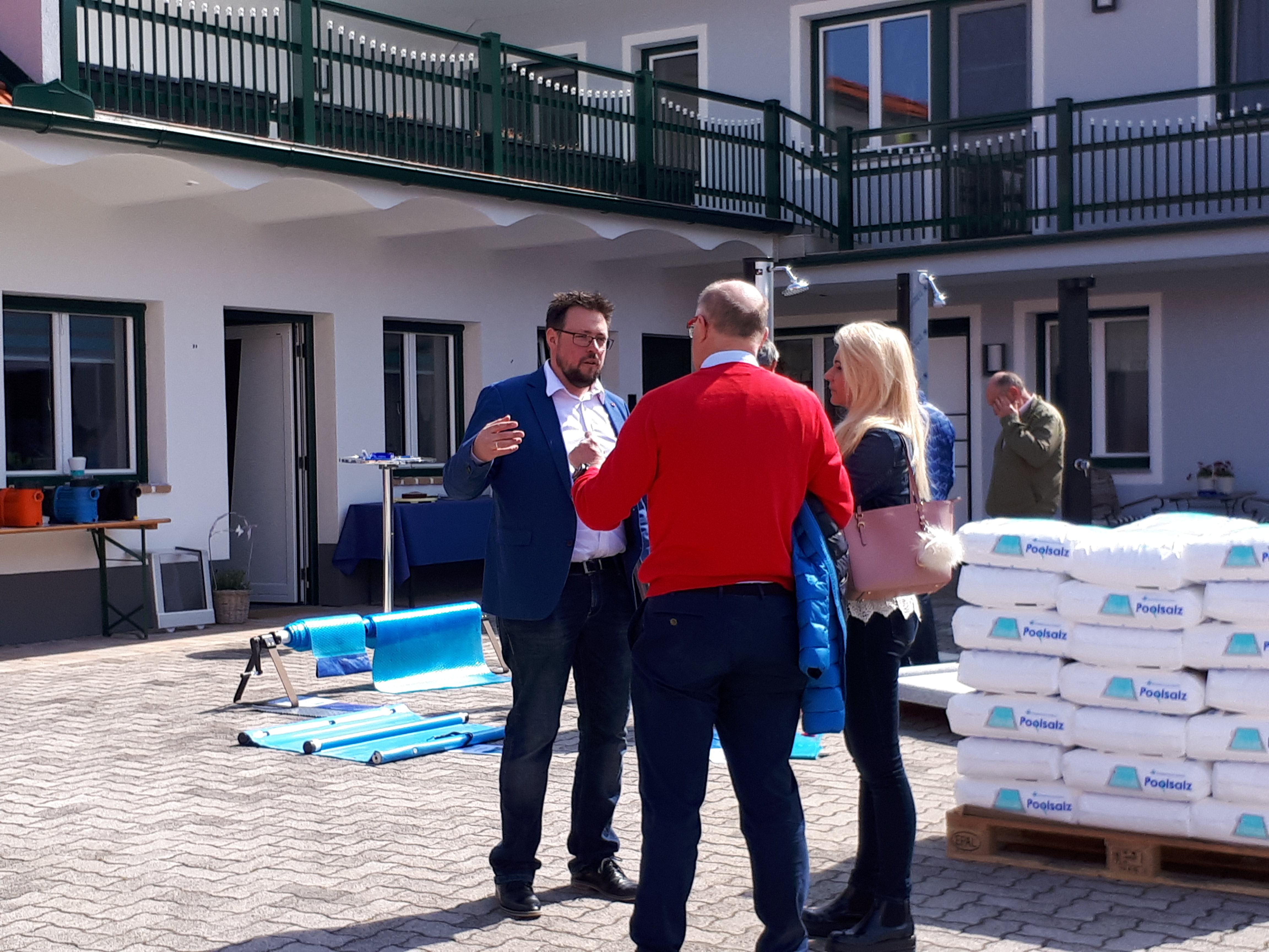 Anlässlich der Hausmesse gab es auch heuer wieder die Aktionspreise für Poolpflegemittel, Poolreiniger & Solarduschen – viele Stammkunden kamen, um davon zu profitieren. Bei Sonnenschein, Kaffee & Kuchen kam dann das eine oder andere nette Gespräch zu Stande.