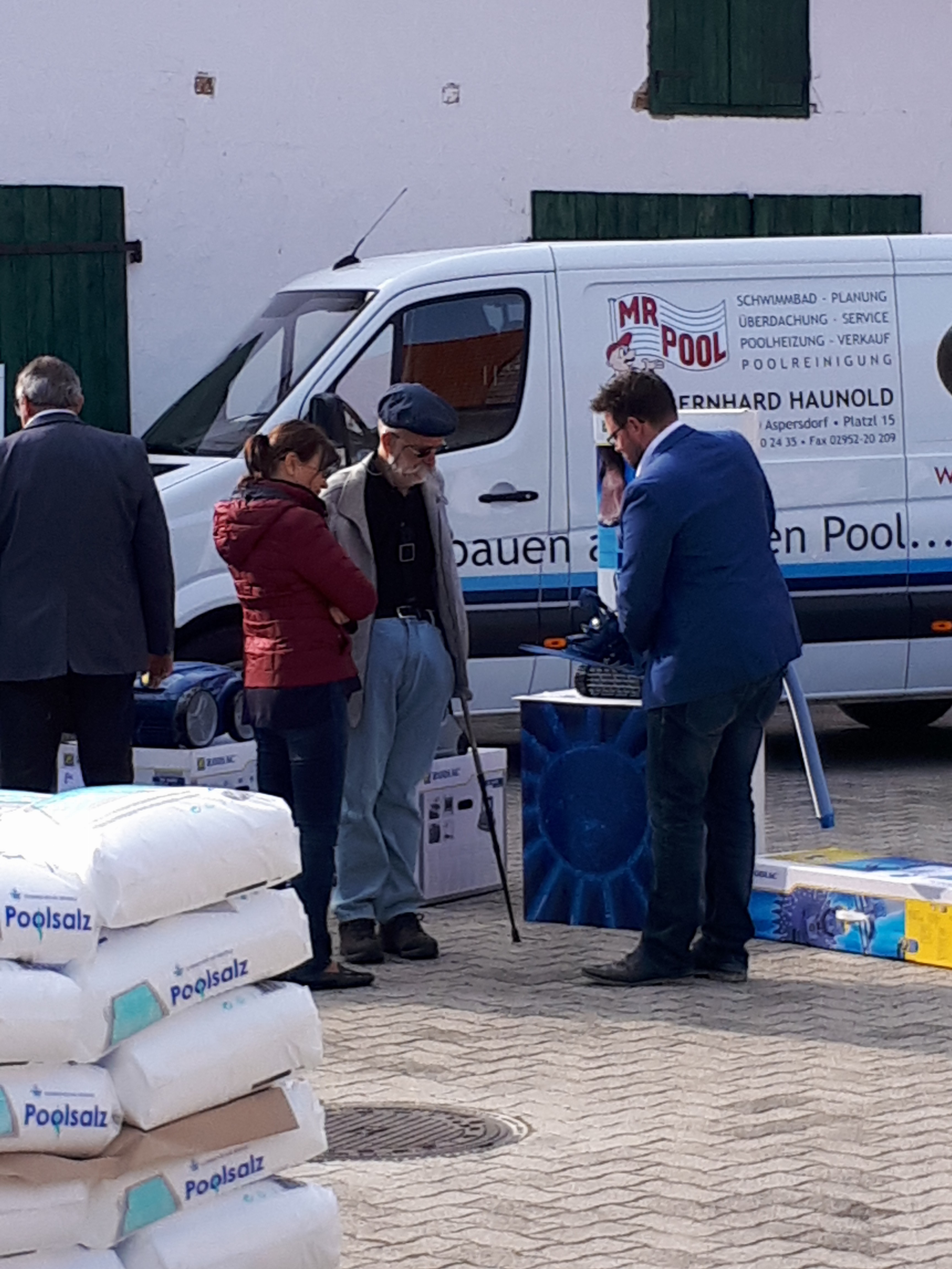 Anlässlich der alljährlichen Hausmesse gab es natürlich auch wieder die Aktionspreise für Poolpflegemittel, Poolreiniger & Solarduschen – viele Stammkunden kamen, um davon zu profitieren. Bei Sonnenschein, Kaffee & Kuchen kam dann das eine oder andere nette Gespräch zu Stande.